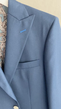 上品なカラー・光沢生地の新作セットアップ。一見派手に見えるカラーですが、着用してみると肌なじみが良く、1年中着用出来ます。普通のスーツよりさらにおしゃれさや華やかさを求める方におすすめ!
