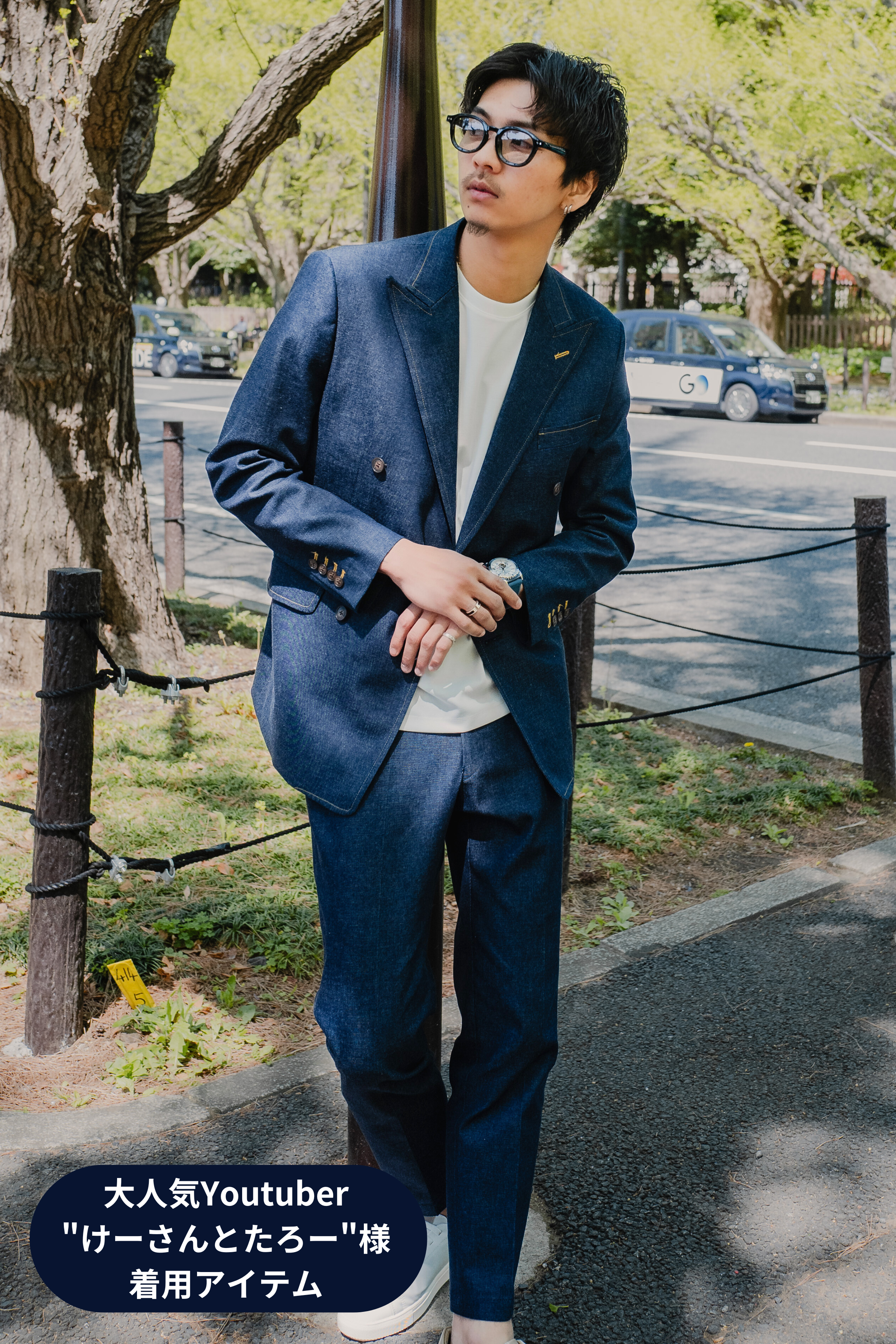 デニムセットアップを着ると、他のスーツが着られなくなるほど着心地が良いです!カジュアルに着たい時はTシャツ×スニーカースタイル、フォーマルに着たい時はシャツ×革靴などバリエーションがかなり幅広いのもこちらの商品の特徴です。あえて色落ちする素材でお作りしているので、色落ちの過程も十分に楽しんでいただける1着です。